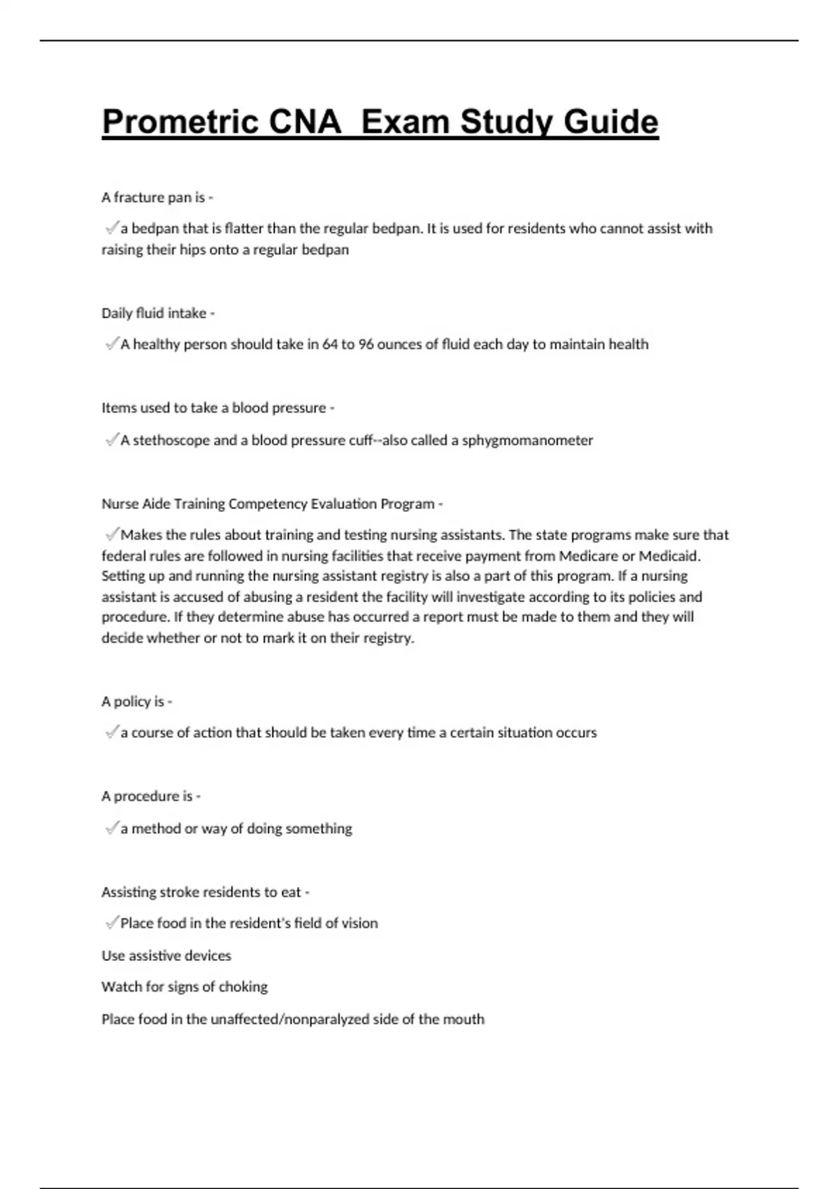 Prometric CNA Exam Study Guide.