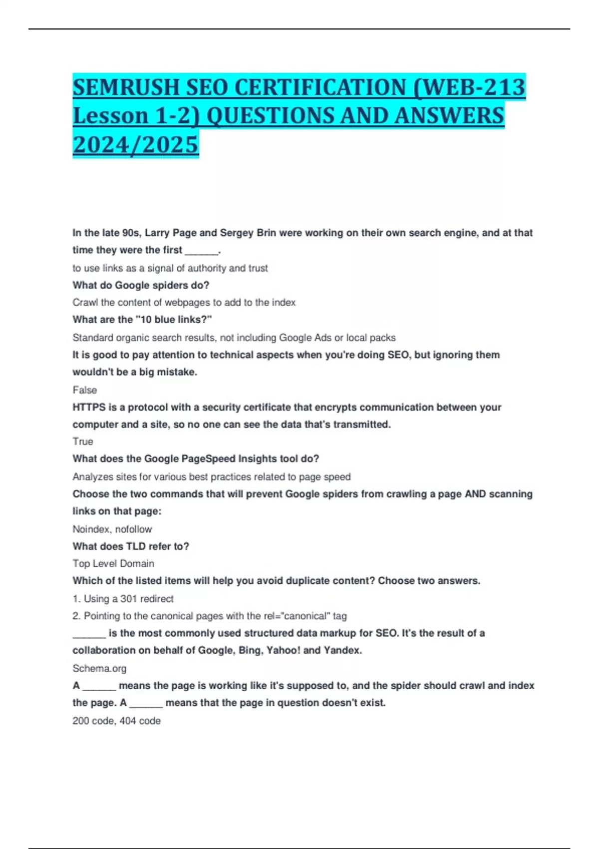 SEMRUSH SEO CERTIFICATION (WEB-213 Lesson 1-2) QUESTIONS AND ANSWERS 2024/2025