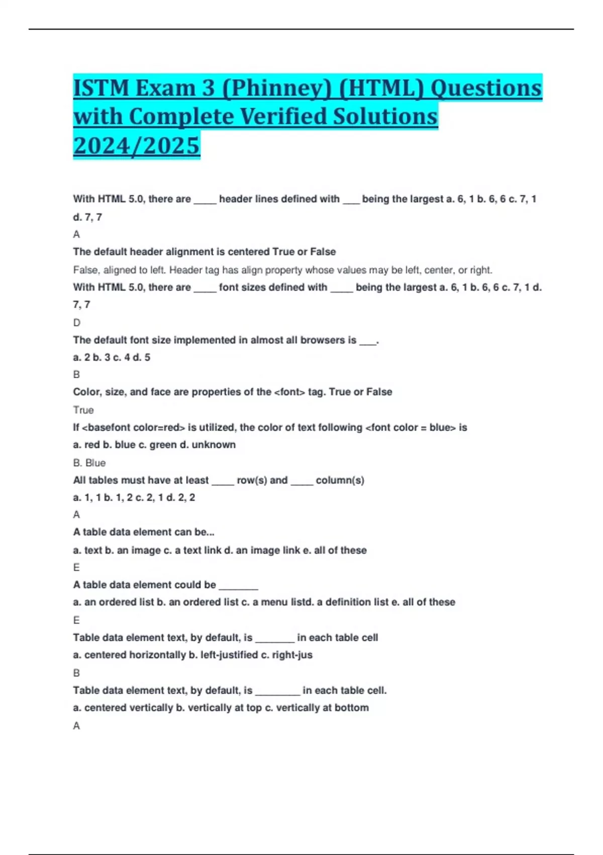 ISTM Exam 3 (Phinney) (HTML) Questions with Complete Verified Solutions 2024/2025