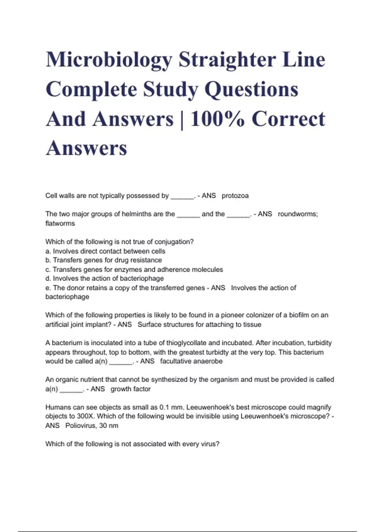 Microbiology Straighter Line Complete Study Questions And Answers | 100% Correct Answers