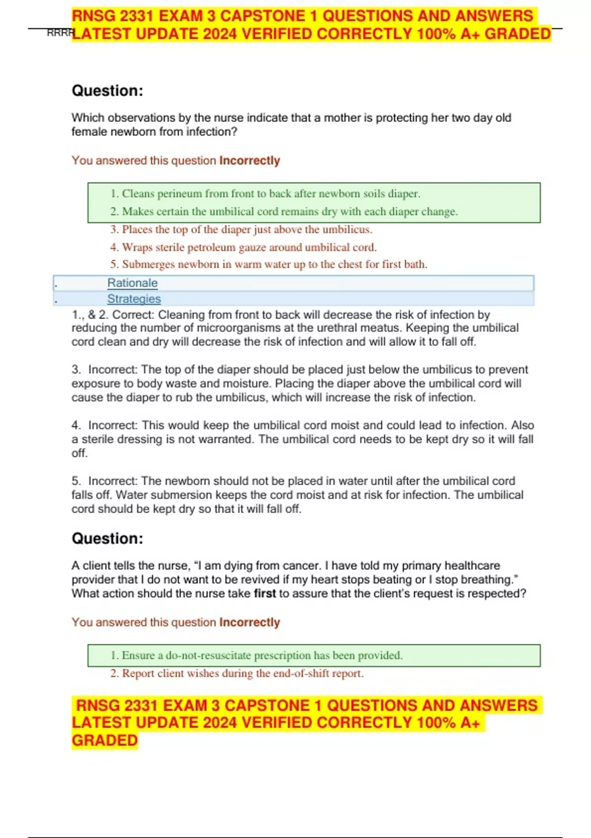 RNSG 2331 EXAM 3 CAPSTONE 1 QUESTIONS AND ANSWERS LATEST UPDATE 2024 VERIFIED CORRECTLY 100% A+ GRADED