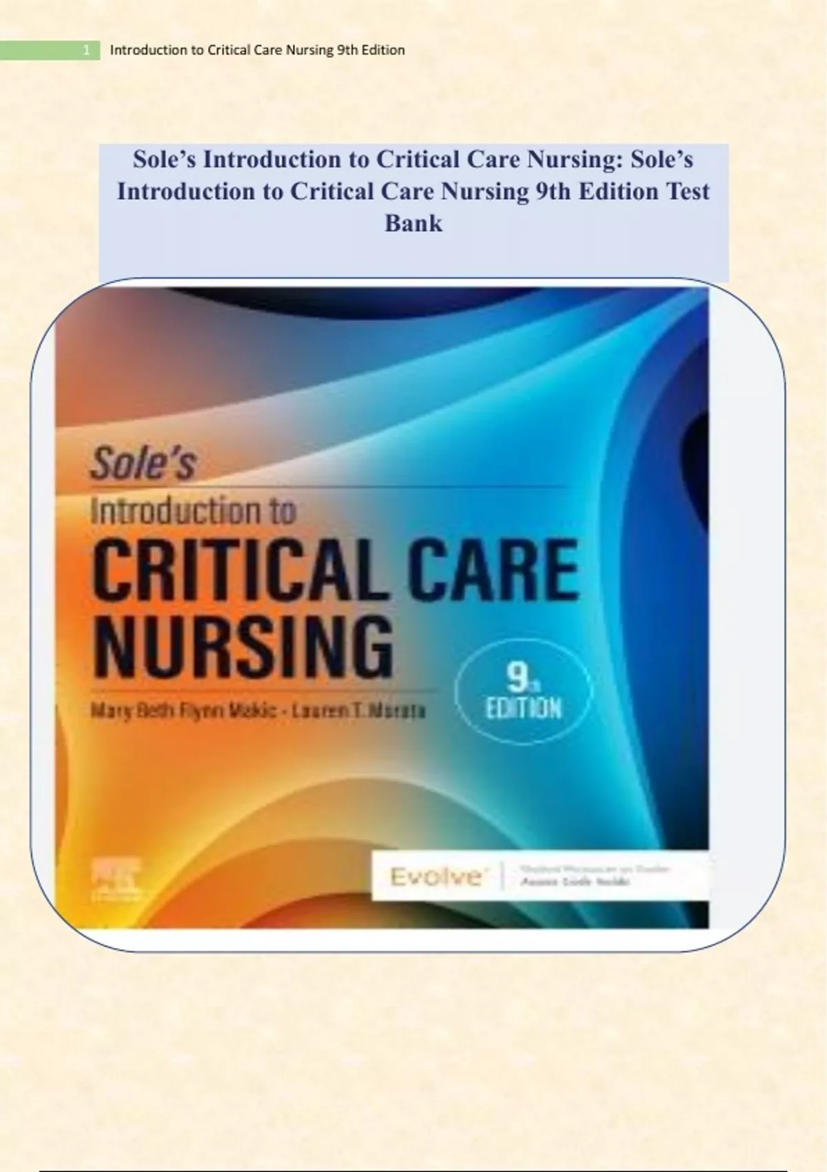 Sole’s Introduction to Critical Care Nursing: Sole’s Introduction to Critical Care Nursing 9th Edition Test Bank Sole’s Introduction to Critical Care Nursing: Sole’s Introduction to Critical Care Nursing 9th Edition Test Bank