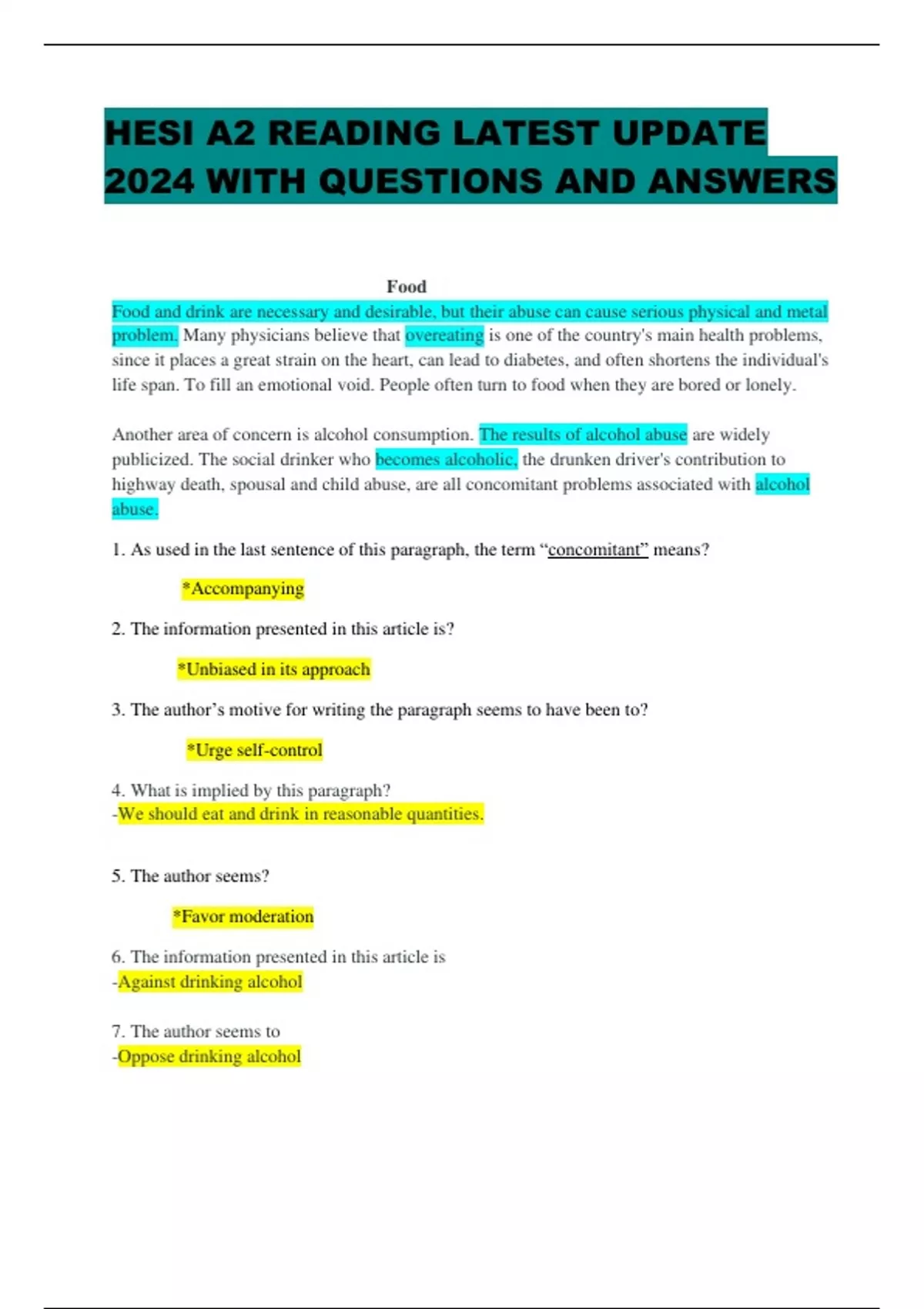 - HESI A2 READING LATET UPDATE 2024 WITH QUESTONS