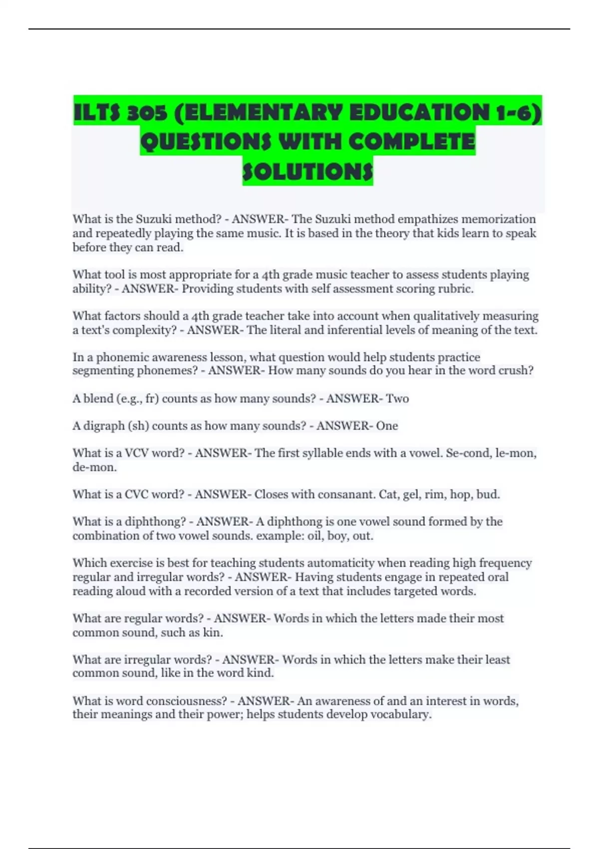 ILTS 305 (ELEMENTARY EDUCATION 1-6) QUESTIONS WITH COMPLETE SOLUTIONS