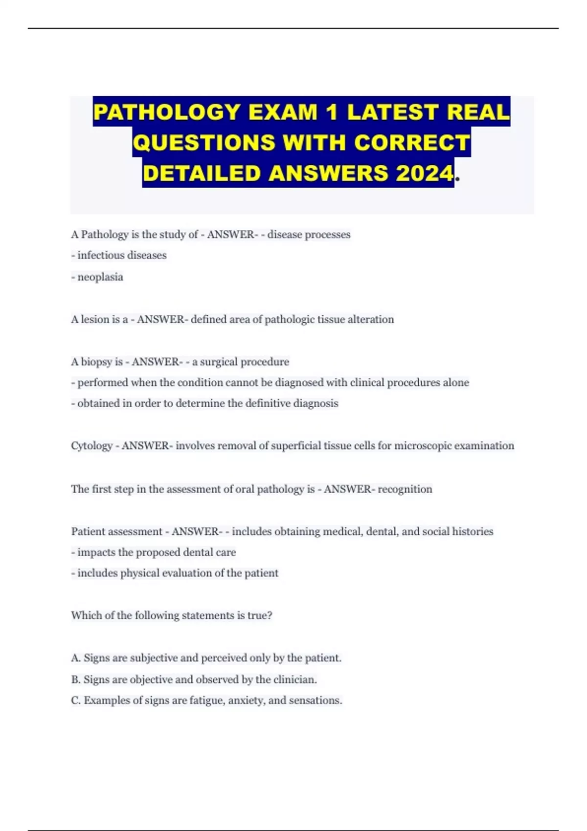 - PATHOLOGY EXA 1 LAEST REAL QUESTINS WITH CORRE