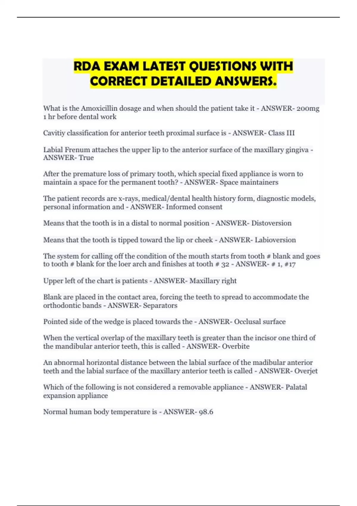 - RDA EXA LAEST QUESTINS WITH CORECT DETAILED A