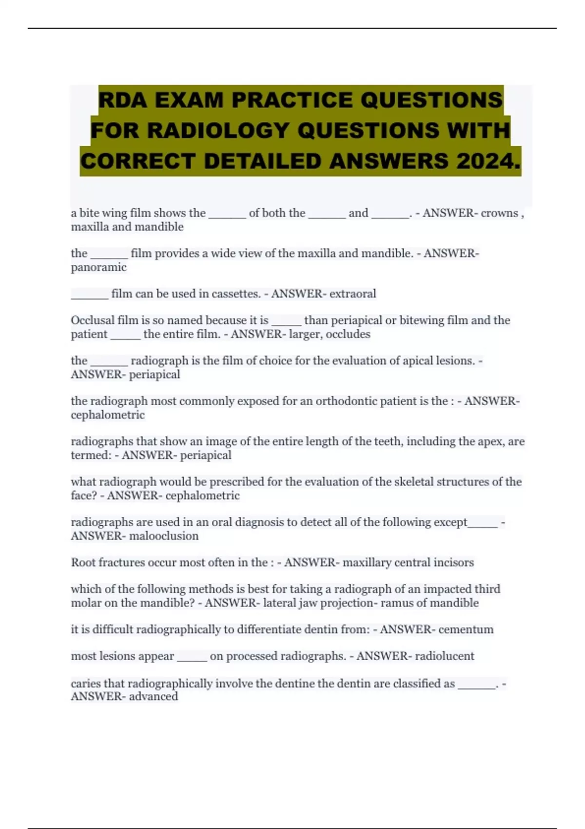 RDA EXAM PRACTICE QUESTIONS FOR RADIOLOGY QUESTIONS WITH CORRECT DETAILED ANSWERS 2024.