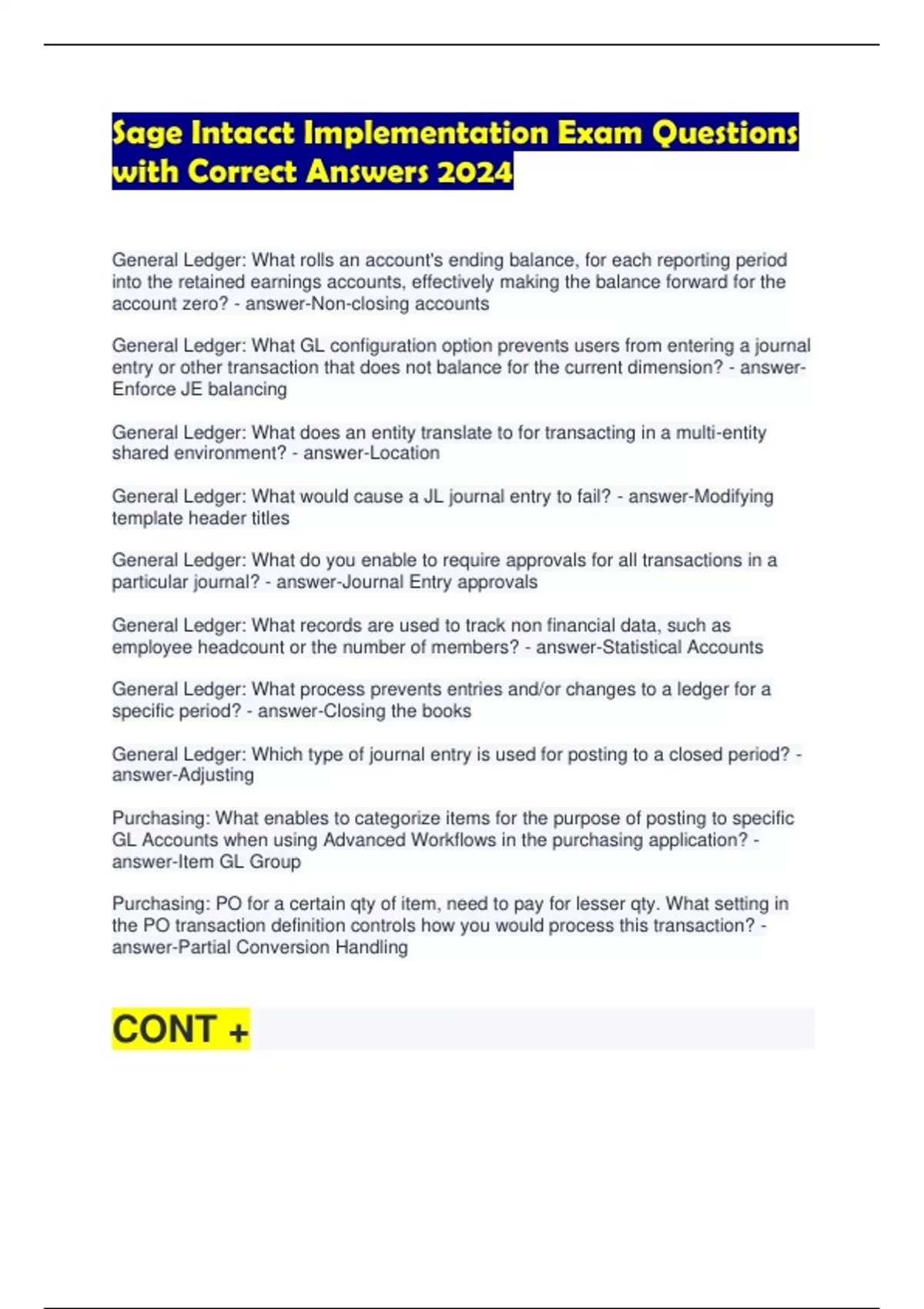 Sage Intacct Implementation Exam Questions with Correct Answers 2024