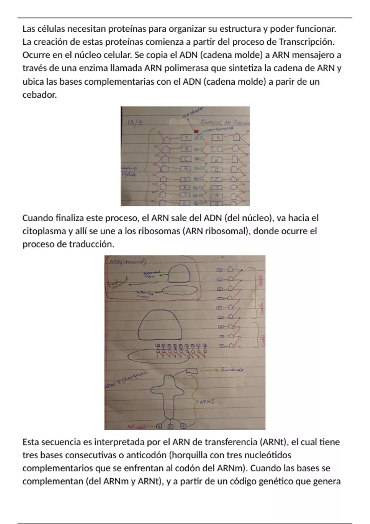 La creación de estas proteínas comienza a partir del proceso de Transcripción.
