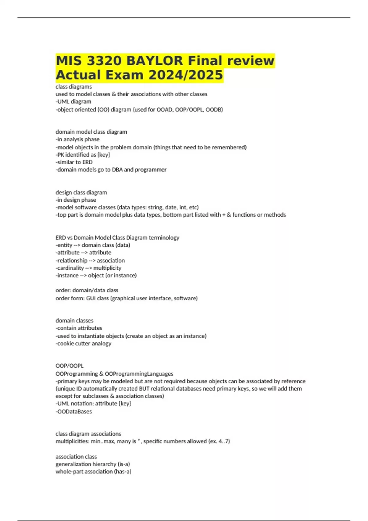 mis 3320 baylor final review actual exam 2024202