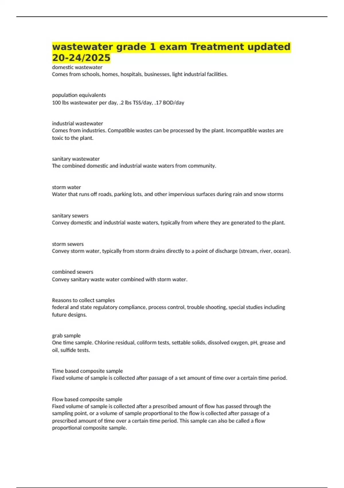 wastewater grade 1 exam Treatment updated 20-24/2025