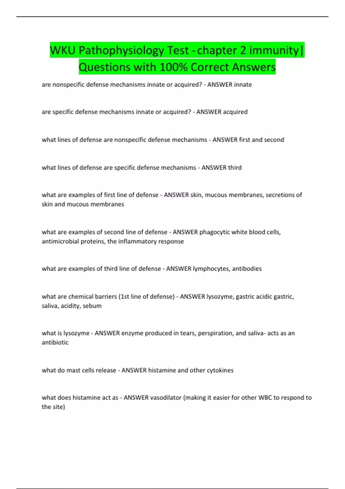 WKU Pathophysiology Test - chapter 2 immunity| Questions with 100% Correct Answers
