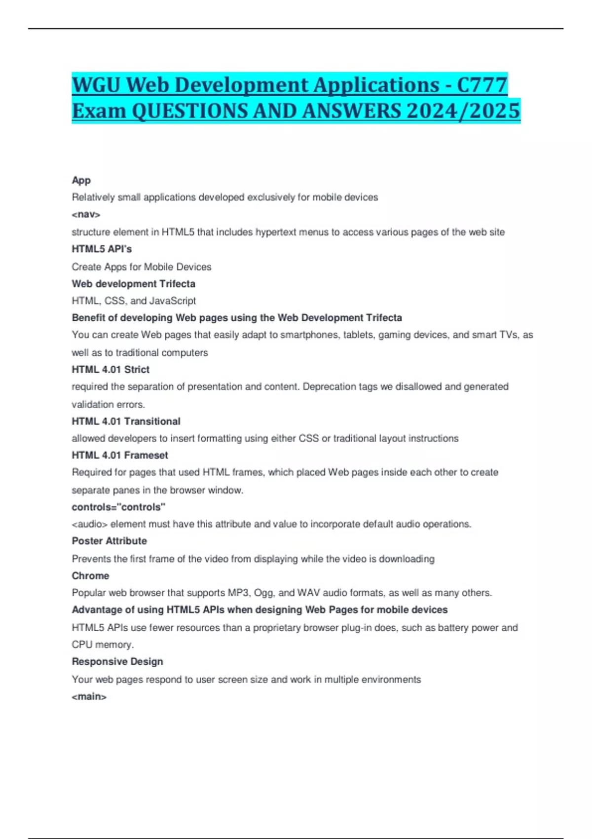WGU Web Development Applications - C777 Exam QUESTIONS AND ANSWERS 2024/2025