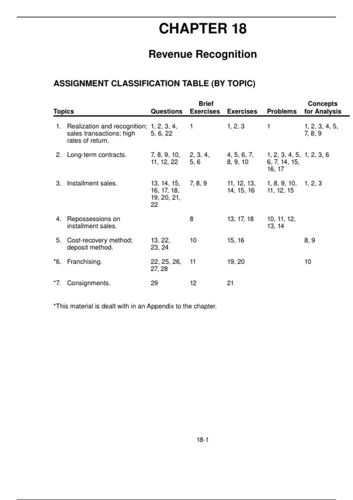 CHAPTER 18Revenue Recognition ASSIGNMENT CLASSIFICATION TABLE (BY TOPIC)