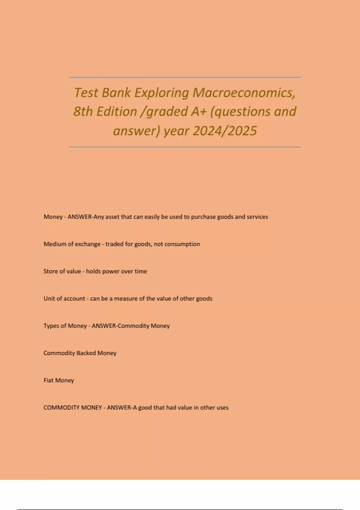 Test Bank Exploring Macroeconomics, 8th Edition /graded A+ (questions and answer) year 2024/2025