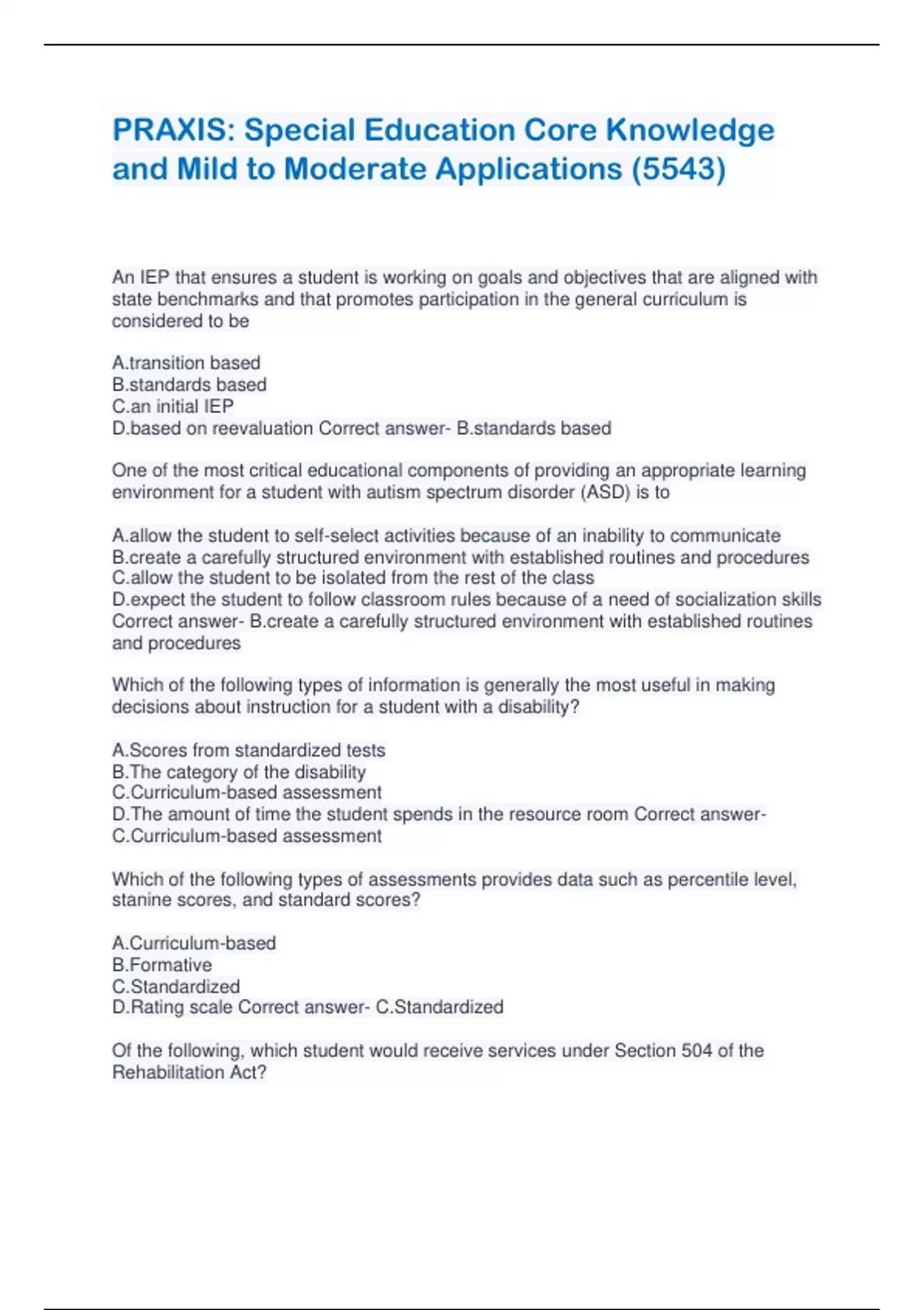 PRAXIS: Special Education Core Knowledge and Mild to Moderate Applications (5543)