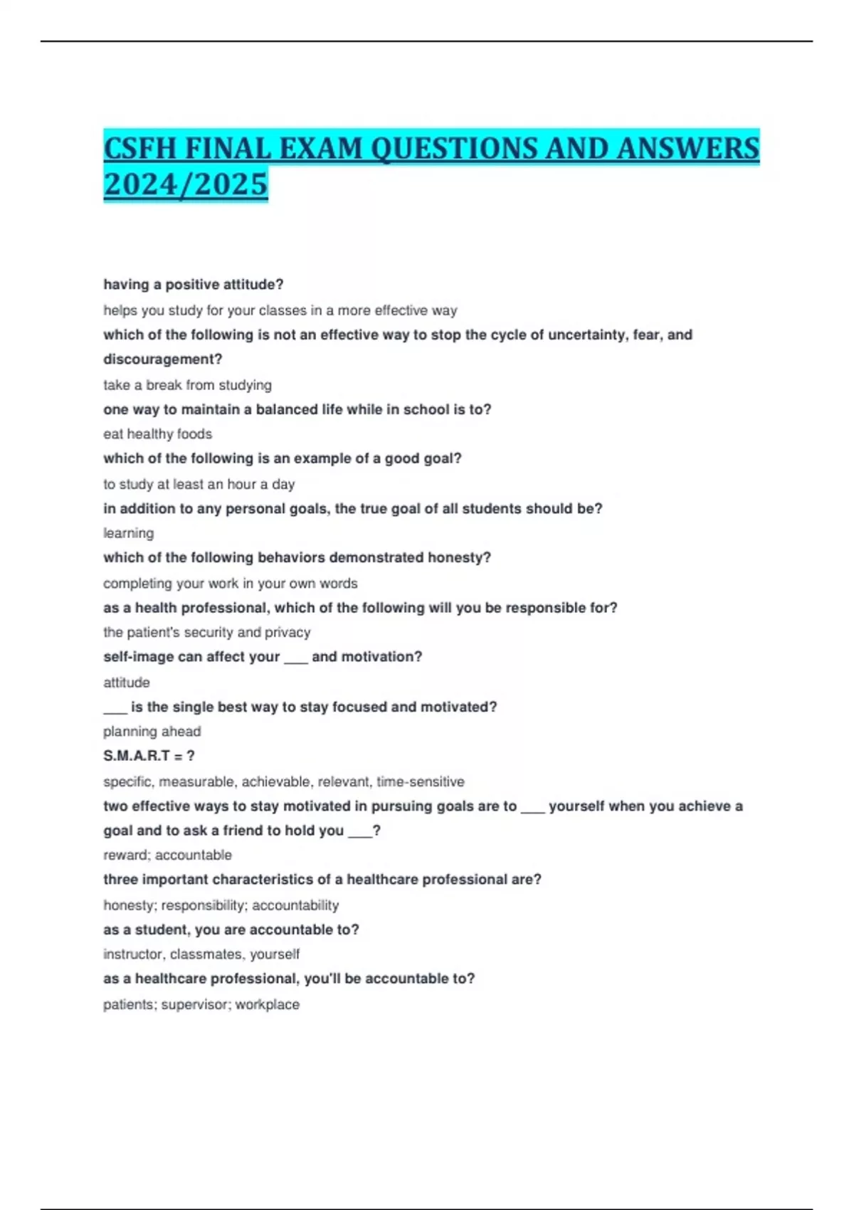 CSFH FINAL EXAM QUESTIONS AND ANSWERS 2024/2025