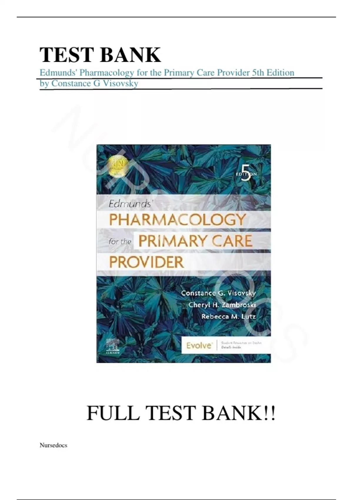 Test Bank For Edmunds' Pharmacology for the Primary Care Provider 5th Edition by Constance G Visovsky||ISBN 978-0323661171||All Chapters||Complete Guide A+||Latest Update