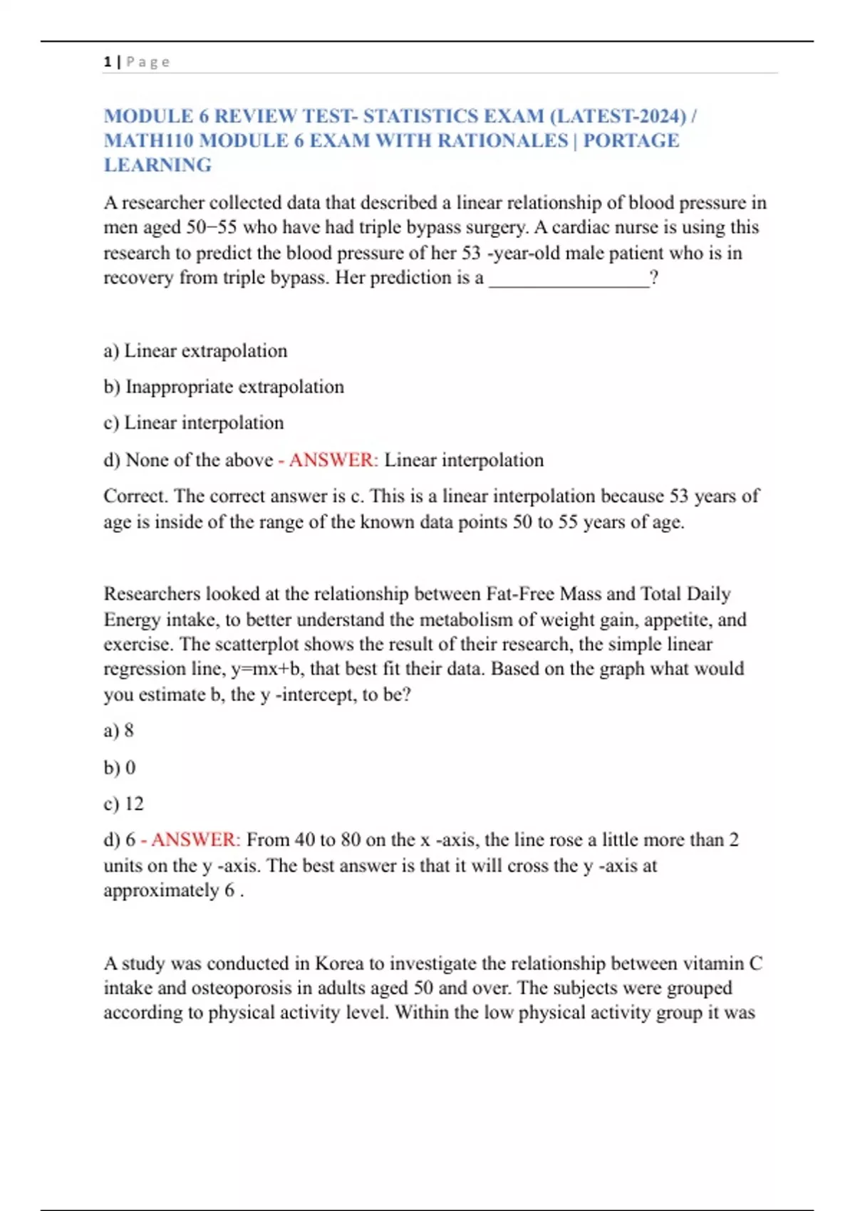 MODULE 6 REVIEW TEST- STATISTICS EXAM (LATEST-2024) / MATH110 MODULE 6 EXAM WITH RATIONALES | PORTAGE LEARNING