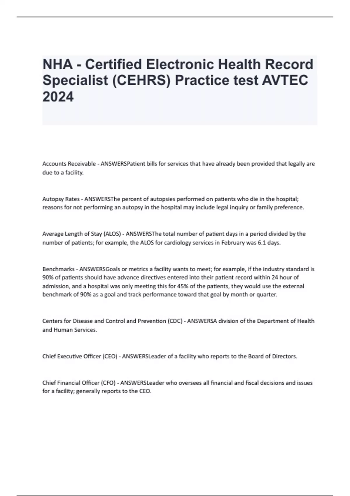 NHA - Certified Electronic Health Record Specialist (CEHRS) Practice test AVTEC 2024