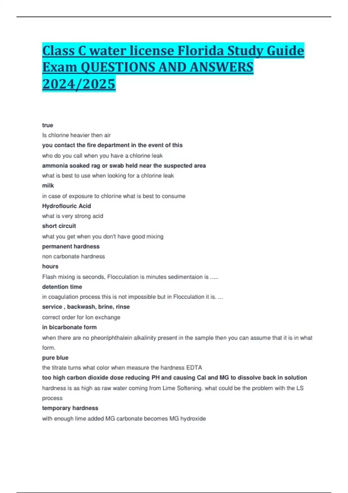 Class C water license Florida Study Guide Exam QUESTIONS AND ANSWERS 2024/2025