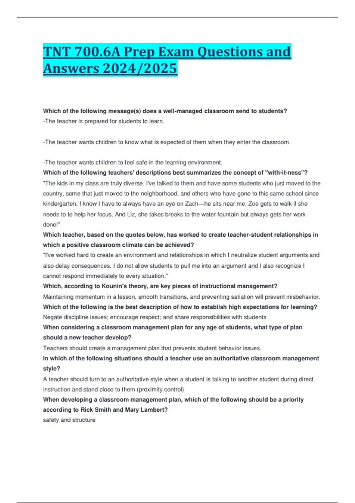 TNT 700.6A Prep Exam Questions and Answers 2024/2025