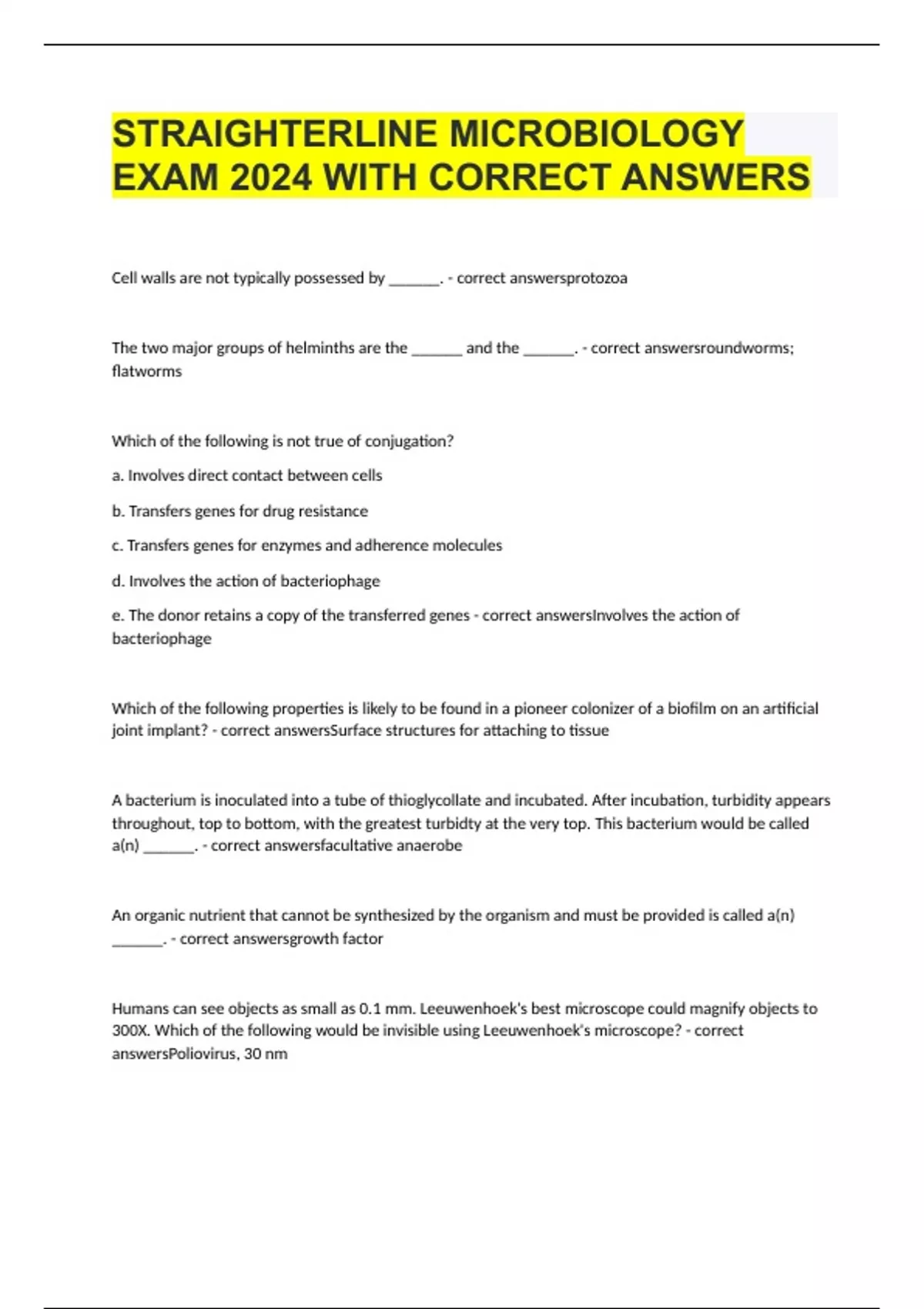 STRAIGHTERLINE MICROBIOLOGY EXAM 2024 WITH CORRECT ANSWERS