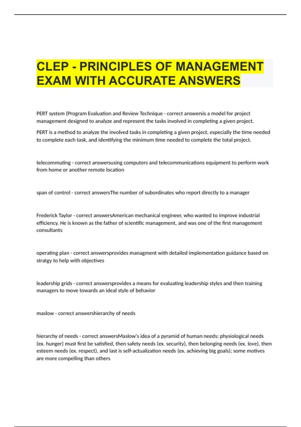 clep principles of management exam with accurate