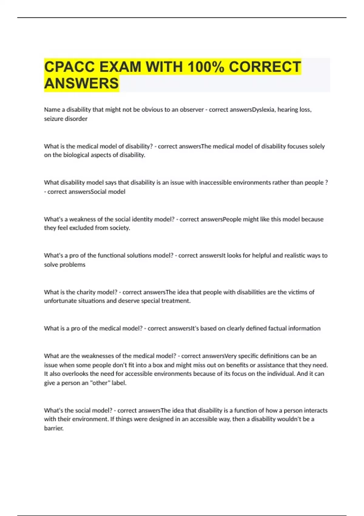 CPACC EXAM WITH 100% CORRECT ANSWERS