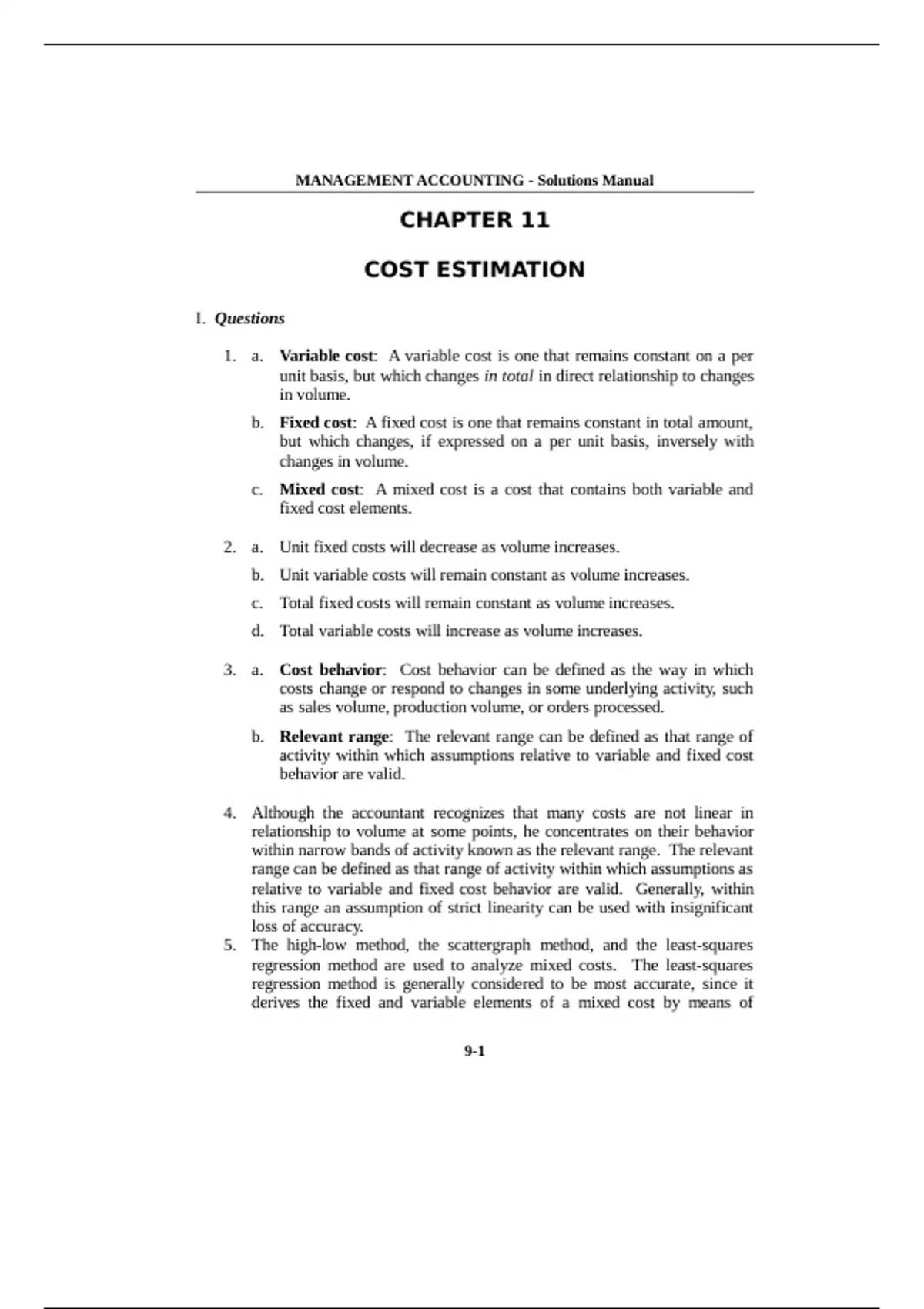 MANAGEMENT ACCOUNTING - Solutions Manual CHAPTER 11 COST ESTIMATION