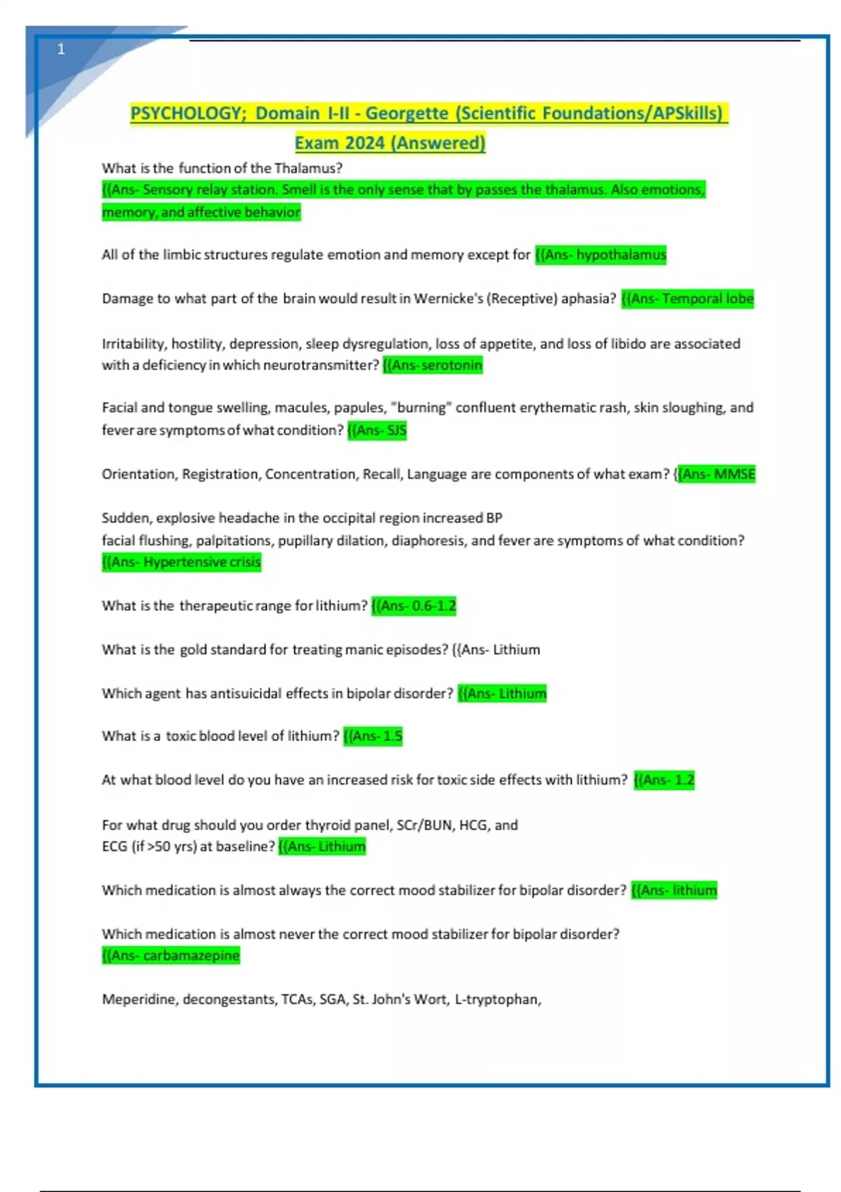 PSYCHOLOGY; Domain I-II - Georgette (Scientific Foundations/APSkills) Exam 2024 (Answered)