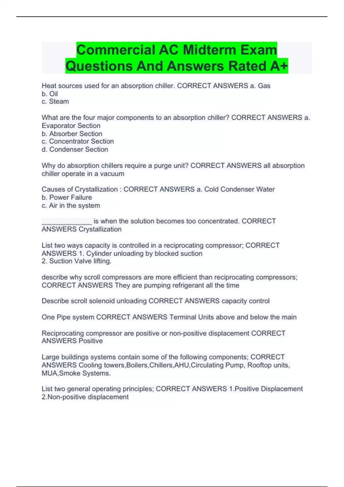 Commercial AC Midterm Exam Questions And Answers Rated A+