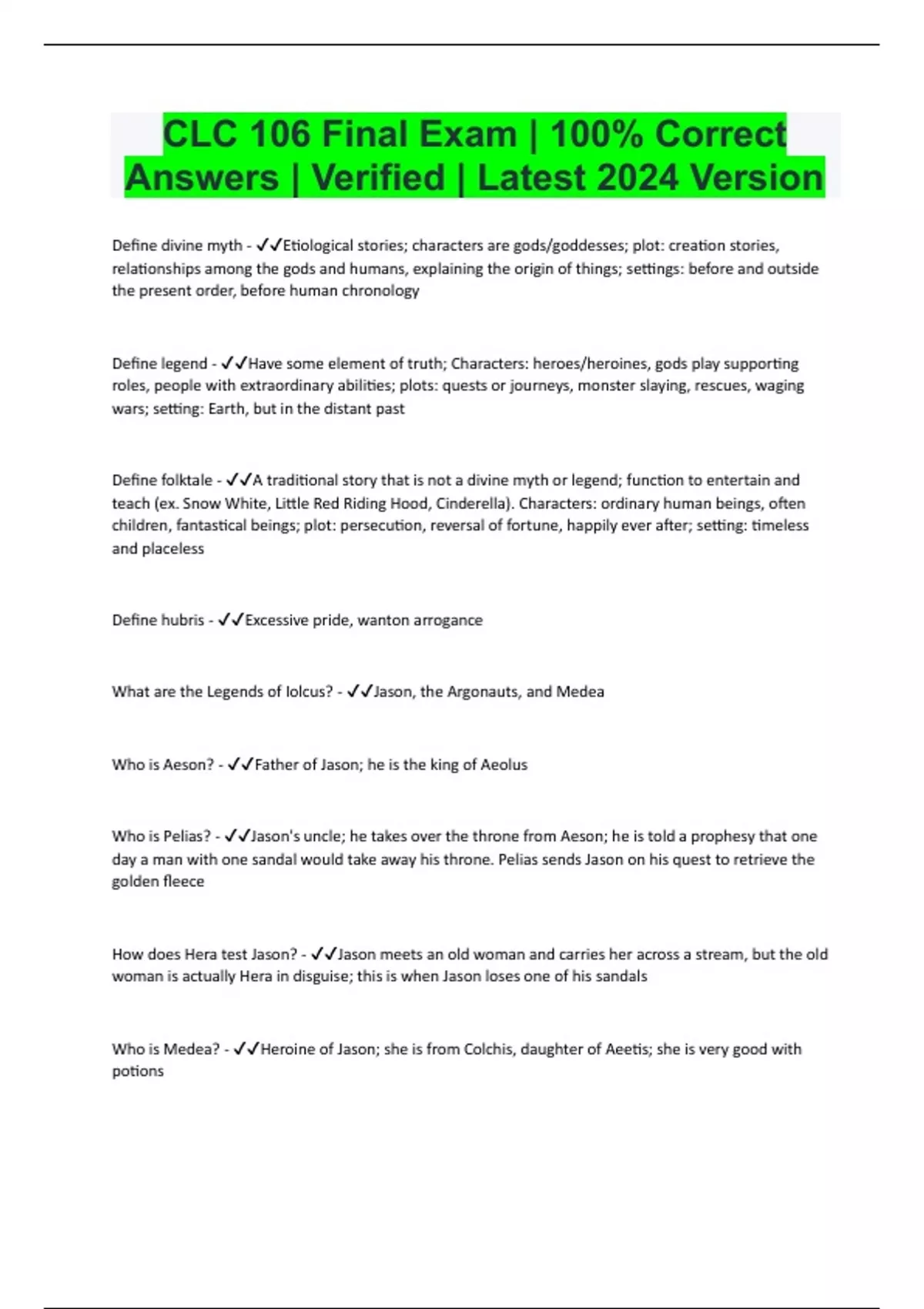 clc 106 final exam 100 correct answers verifi