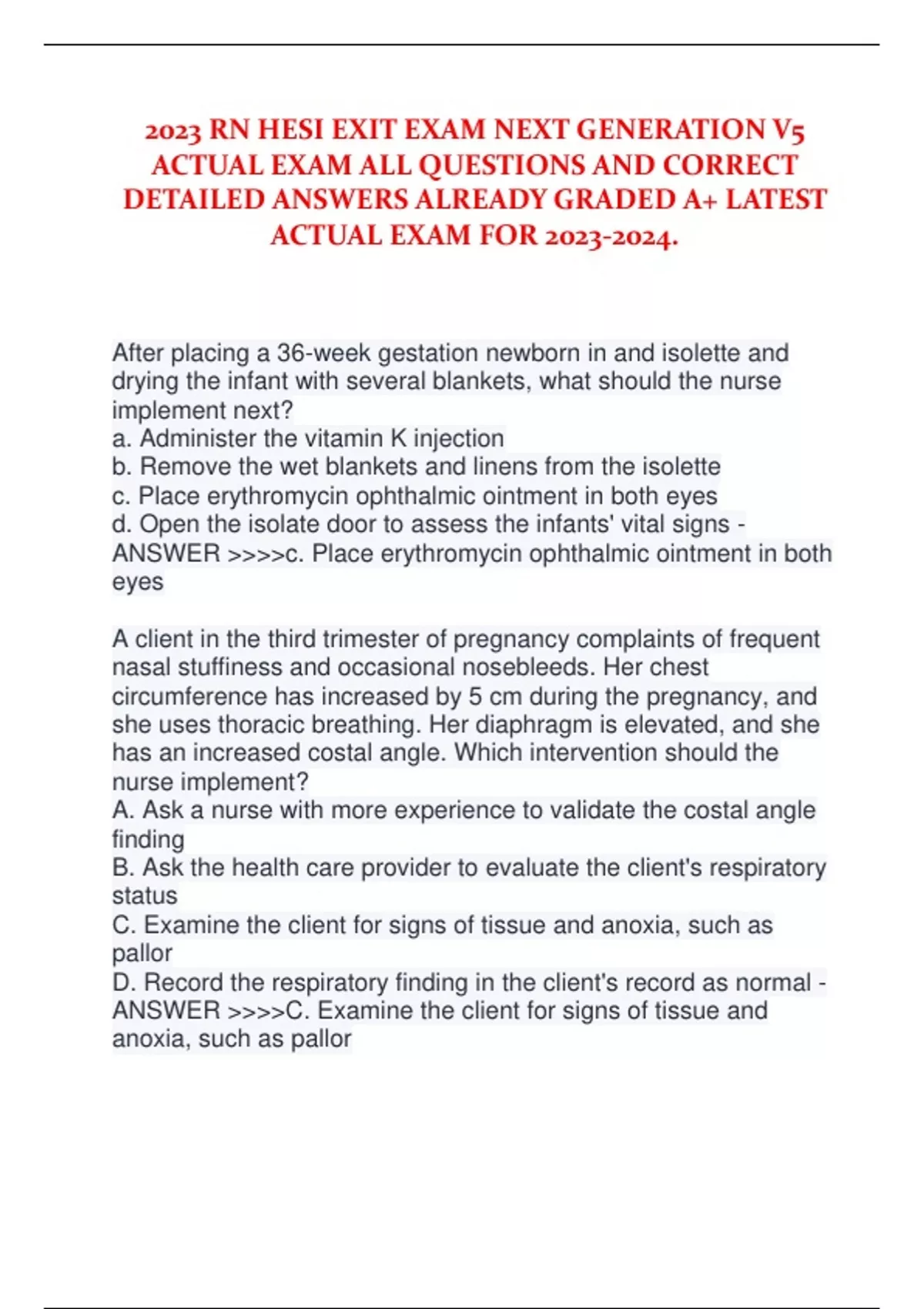 RN ATI LEADERSHIP 2019 PROCTORED EXAM CONTAINS 200 QUESTIONS AND CORRECT ANSWERS ACTUAL EXAM QUESTIONS AND CORRECT ANSWERS AGRADE LATEST UPDATE FOR EXAM. A nurse is preparing an educational program for staff members regarding a new intravenous pump. Identify the sequence of actions the nurse should take when developing the program. (Move the steps into the box on the right, placing them in the selected order of the performance) Develop learning objectives for the program Identify what skills to teach the staff members Conduct program evaluation with staff members Schedule several sessions of the program - ANSWER >>>>Identify what skills to teach the staff members Develop learning objectives for the program Schedule several sessions of the program Conduct program evaluation with staff members A nurse is preparing to discharge a client who as end stage heart failure. The client's partner tells the nurse she can no longer handle caring for the client. Which of the following action should the nurse take? a. Request another family member assist the client's partner with care b. Recommend the partner place the client in long term-care facility c. Contact the case manager to discuss discharge options d. Ask the provider to delay the clients discharge home for a few more days - ANSWER >>>>c. Contact the case manager to discuss discharge options A nurse is providing discharge teaching to the parent of a toddler who has a new diagnosis of asthma. The parent states she is unable to afford the nebulizer prescribed for the child. Which of the following referrals should the nurse recommend? a. Social worker b. Pharmacist c. Respiratory therapist d. Child protective services - ANSWER >>>>a. Social worker A charge nurse is making staff assignments on a medicalsurgical unit. Which of the following tasks should the nurse plan to delegate to an assistive personnel? A. Measuring oxygen saturation for a client who has dyspnea B. Inserting a rectal suppository for a client who is vomiting C. Performing nasal hygiene for a client who has an NG tube D. Pouching a client's ostomy bag for a new colostomy - ANSWER >>>>D. Pouching a client's ostomy bag for a new colostomy A nurse is comparing the rate of medication errors on the medical unit to the rate from a medical unit in a magnet hospital. Which of the following quality improvement methods is the nurse using?