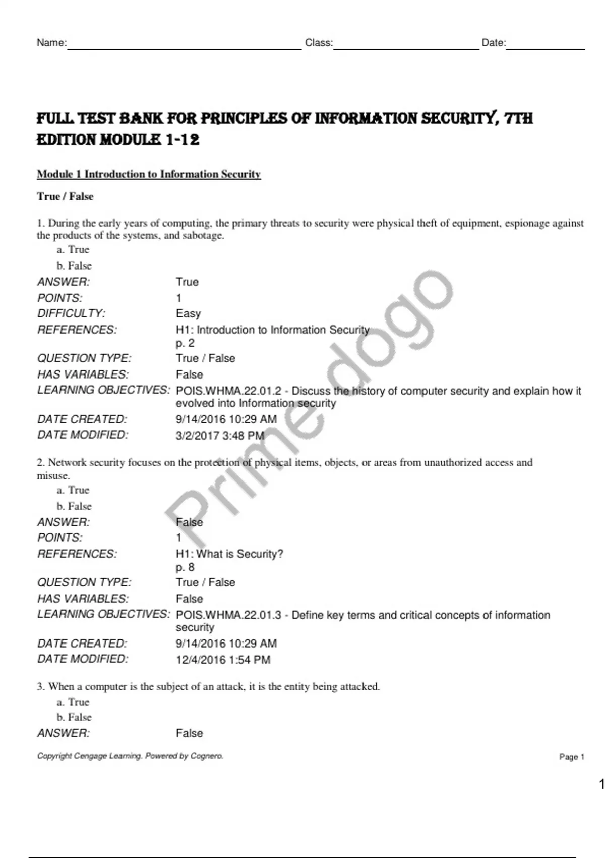 Copyright Cengage Learning. Powered by Cognero. Page 1
