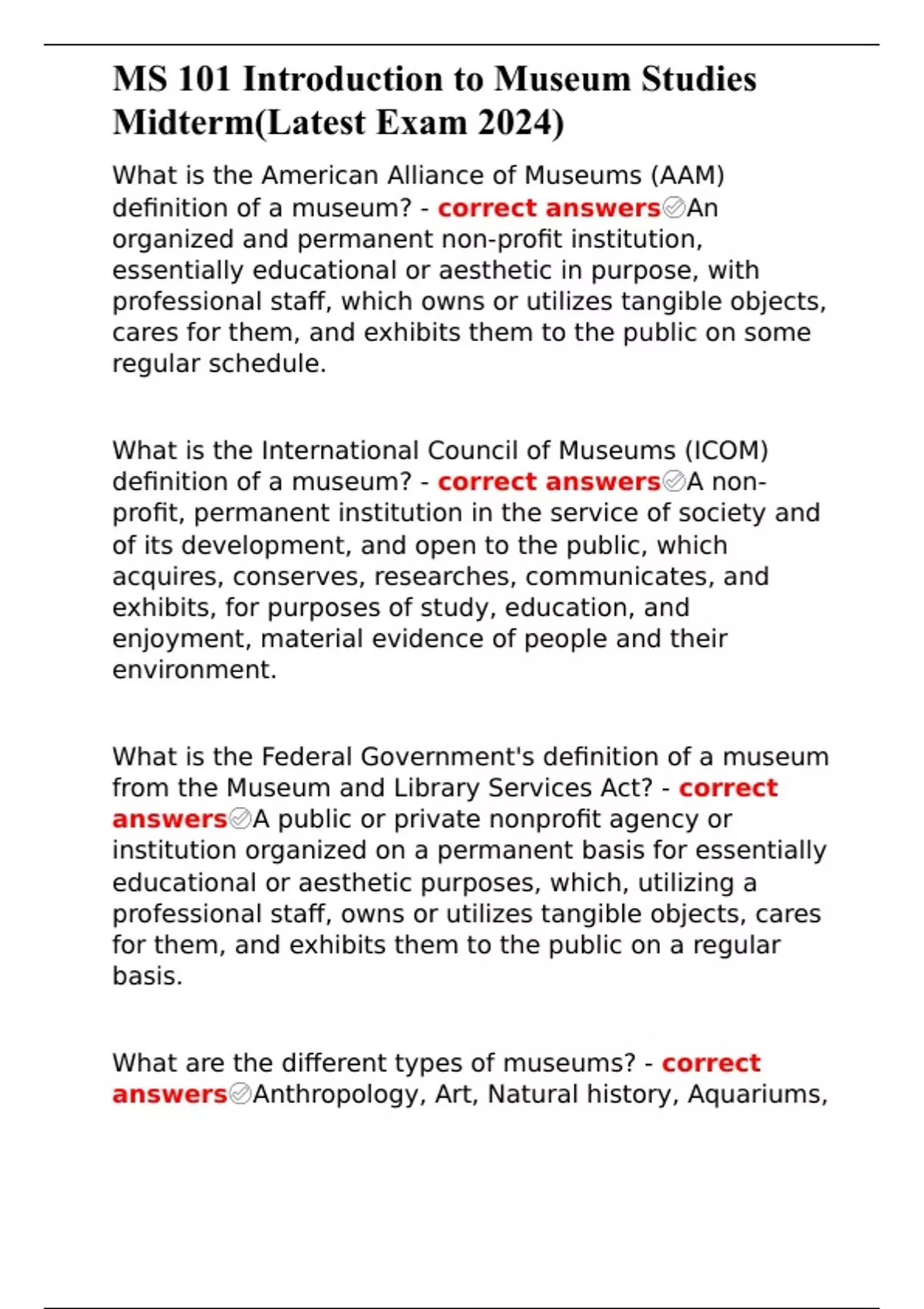 MS 101 Introduction to Museum Studies Midterm(Latest Exam 2024)