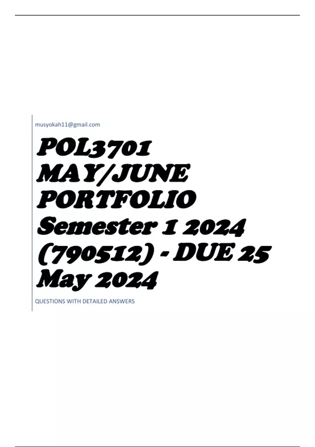 QUESTIONS AND ANSWERS POL3701 MAY/JUNE PORTFOLIO Semester 1 2024 - DUE 25 May 2024