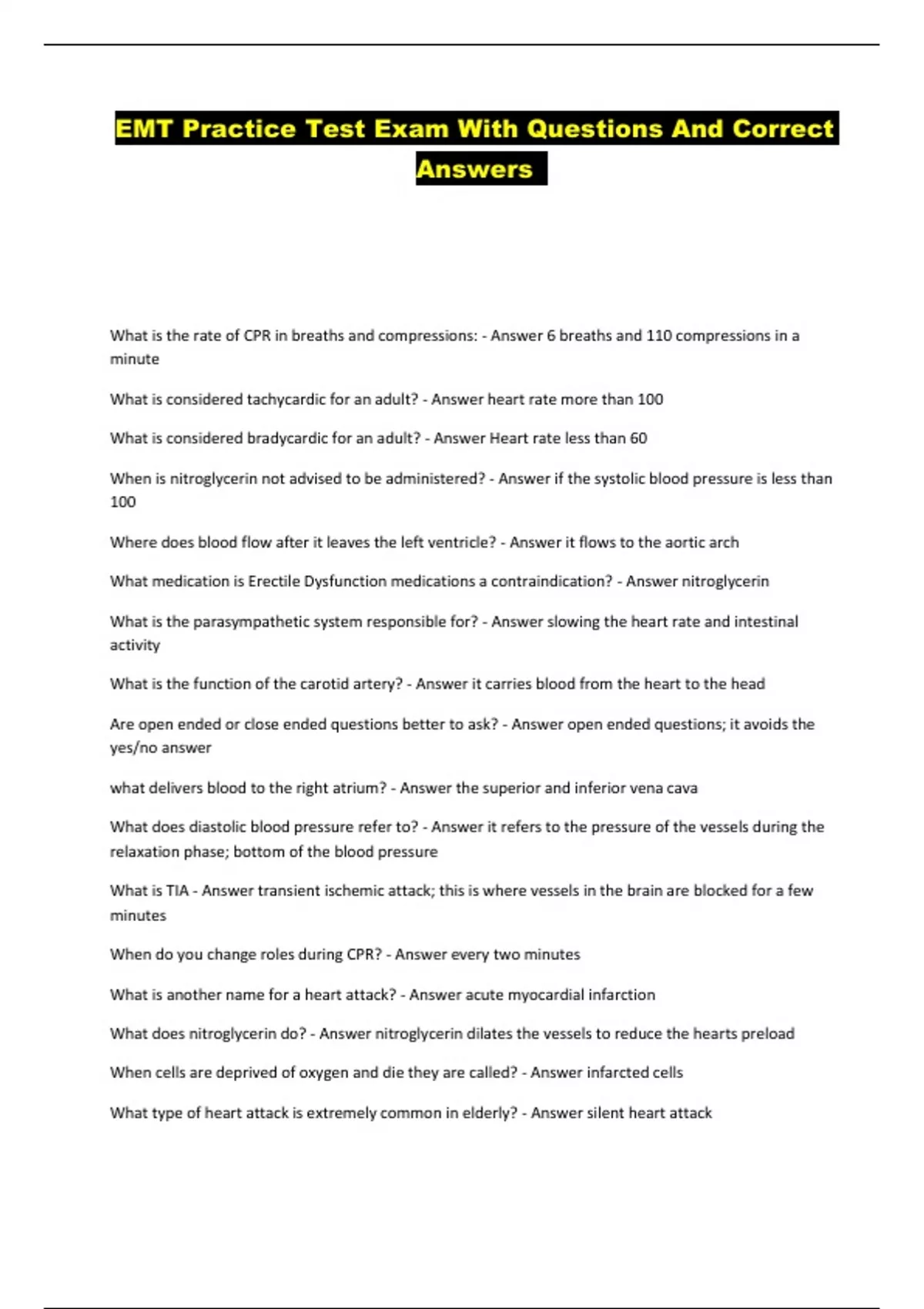 EMT Practice Test Exam With Questions And Correct Answers ...