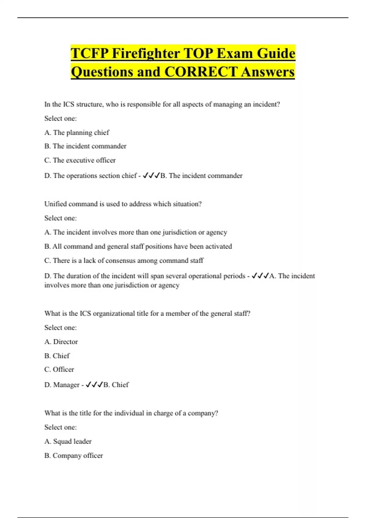 TCFP Firefighter TOP Exam Guide Questions and CORRECT Answers