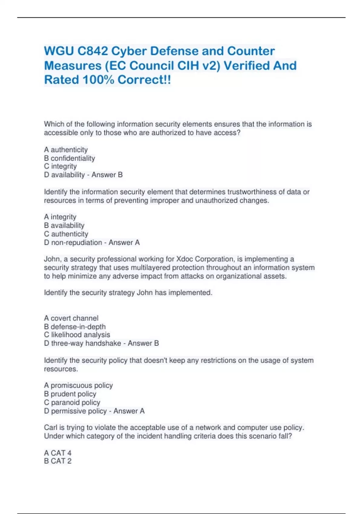 WGU C842 Cyber Defense And Counter Measures (EC Co
