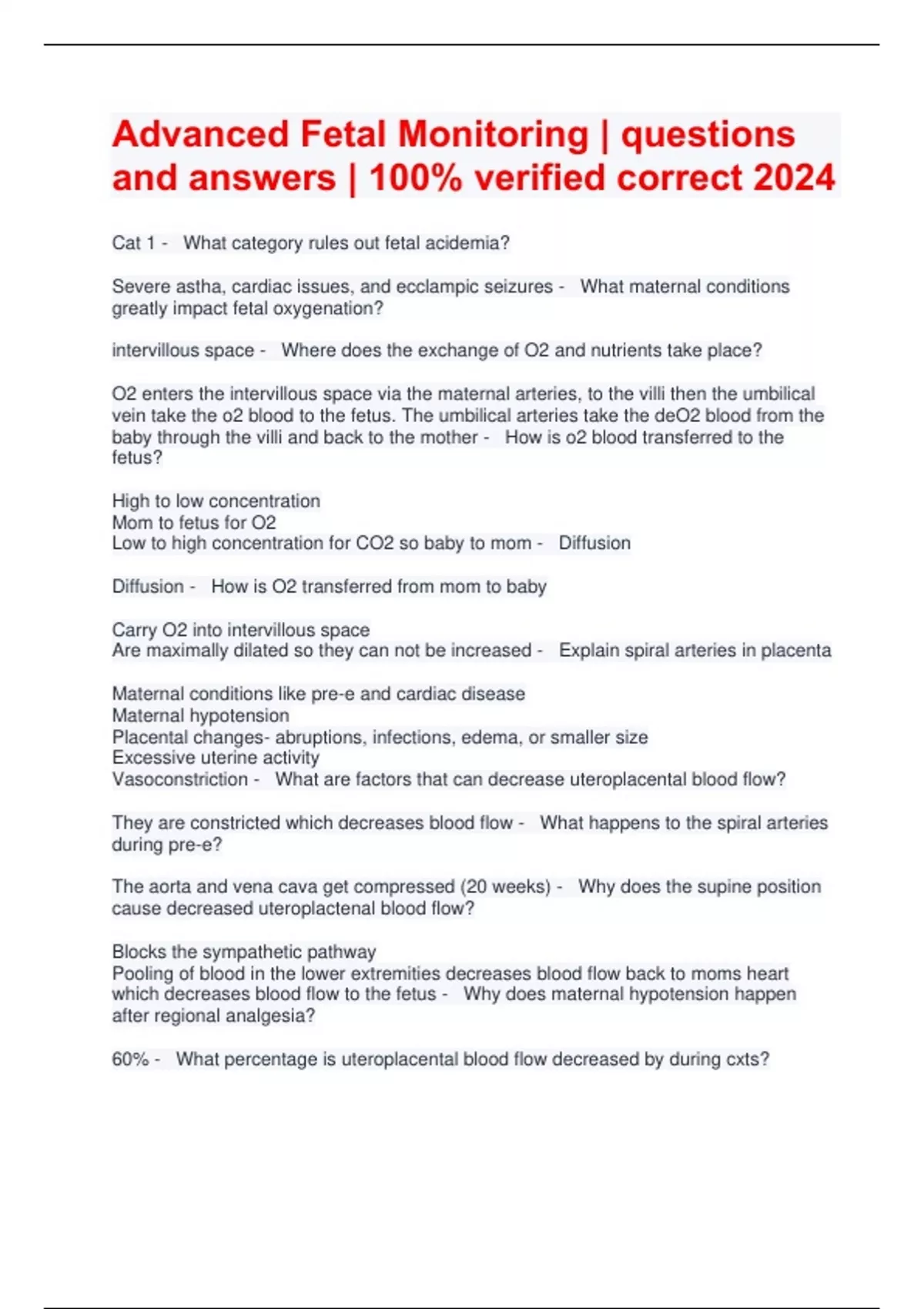 Advanced Fetal Monitoring | questions and answers | 100% verified correct 2024