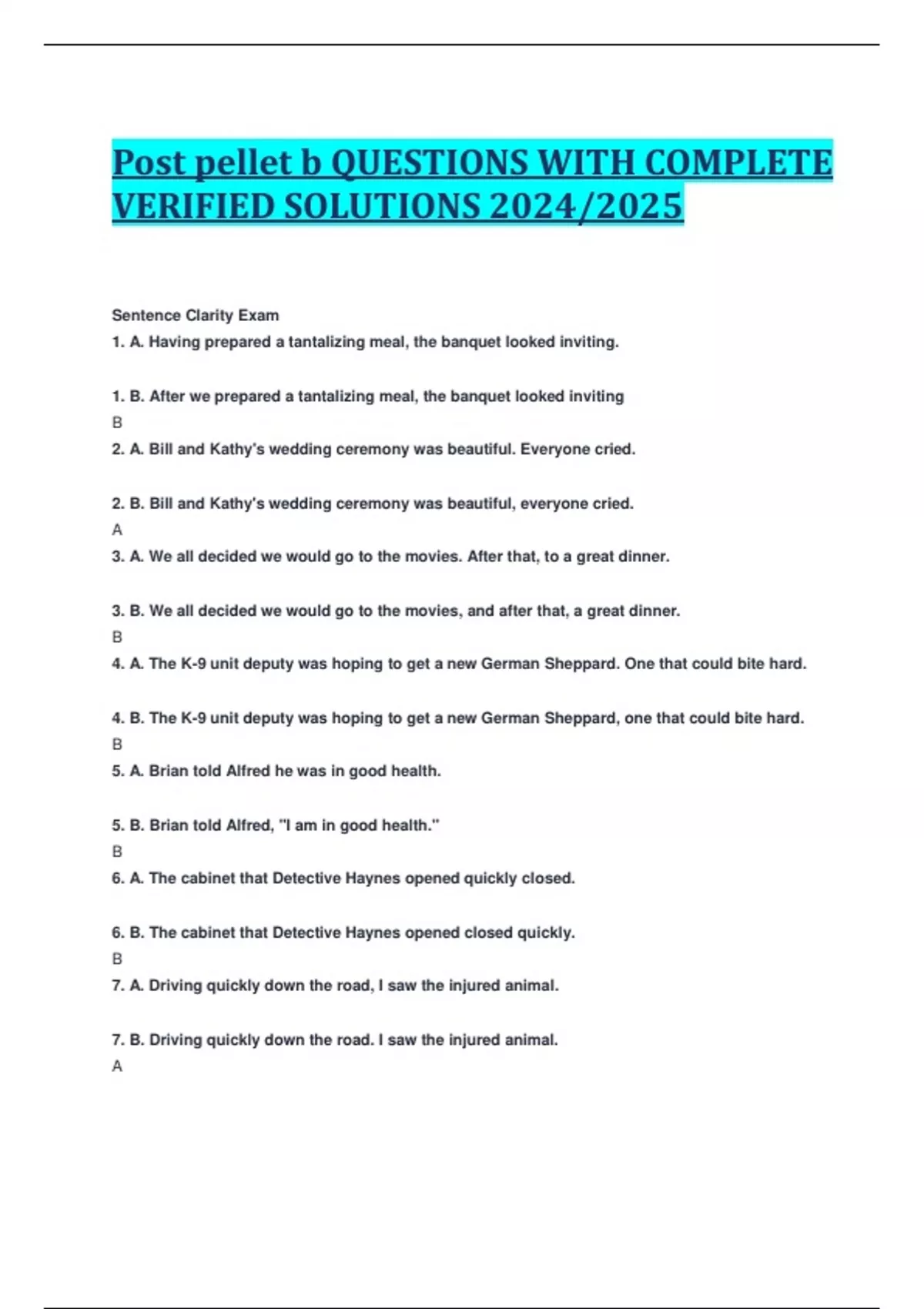 Post pellet b QUESTIONS WITH COMPLETE VERIFIED SOLUTIONS 2024/2025
