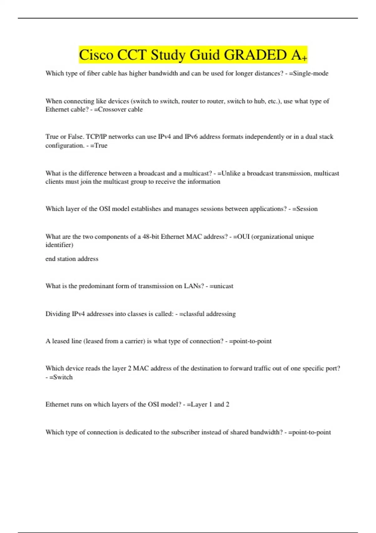 Cisco CCT Study Guid GRADED A+