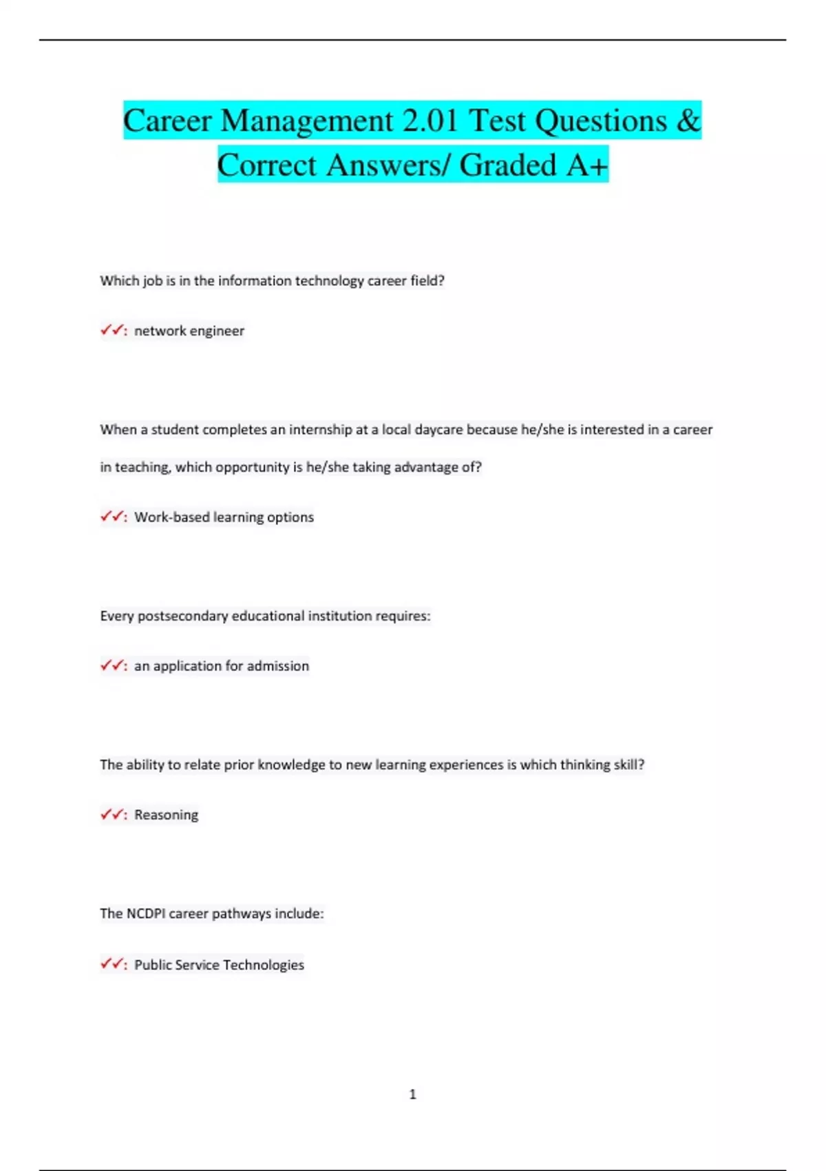 Career Management 2.01 Test Questions & Correct Answers/ Graded A+