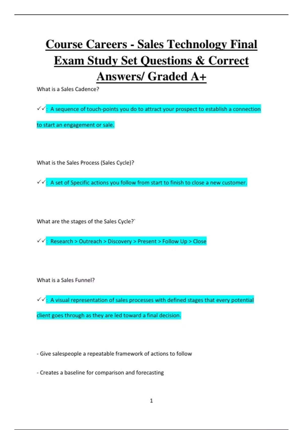 Course Careers - Sales Technology Final Exam Study Set Questions & Correct Answers/ Graded A+