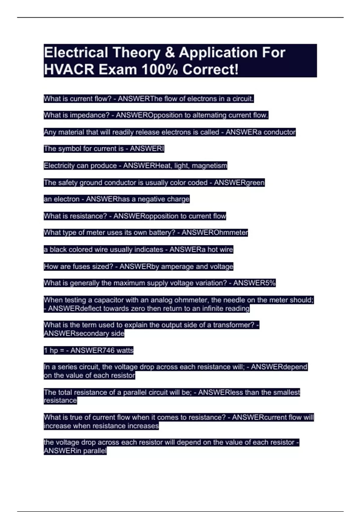 Electrical Theory & Application For HVACR Exam 100% Correct!