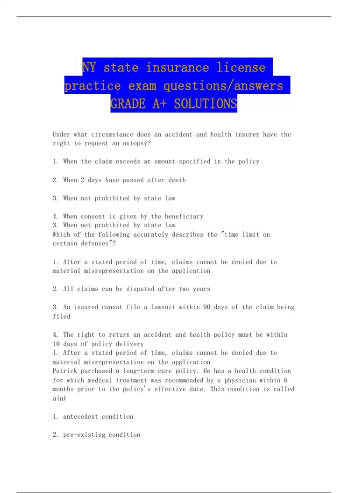 Patrick purchased a long-term care policy. He has a health condition
