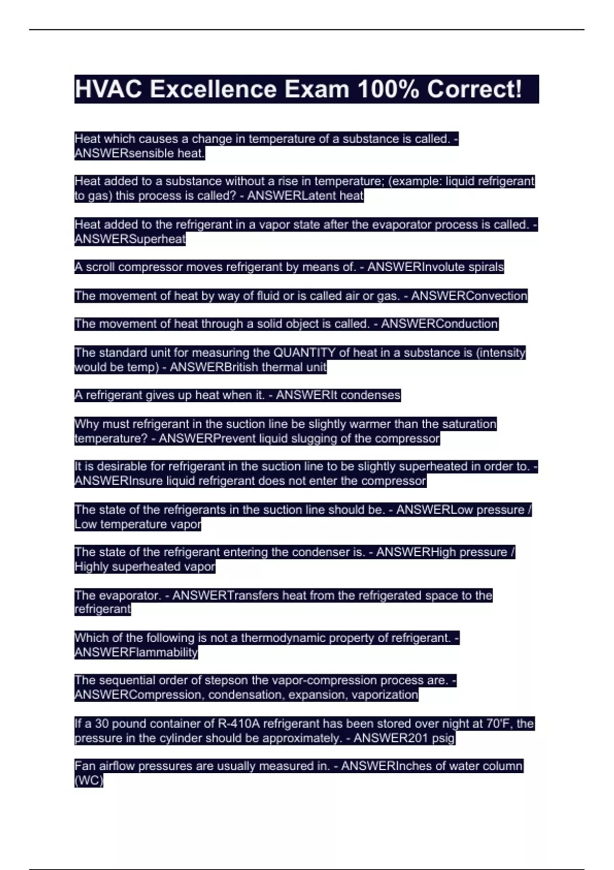 HVAC Excellence Exam 100% Correct!