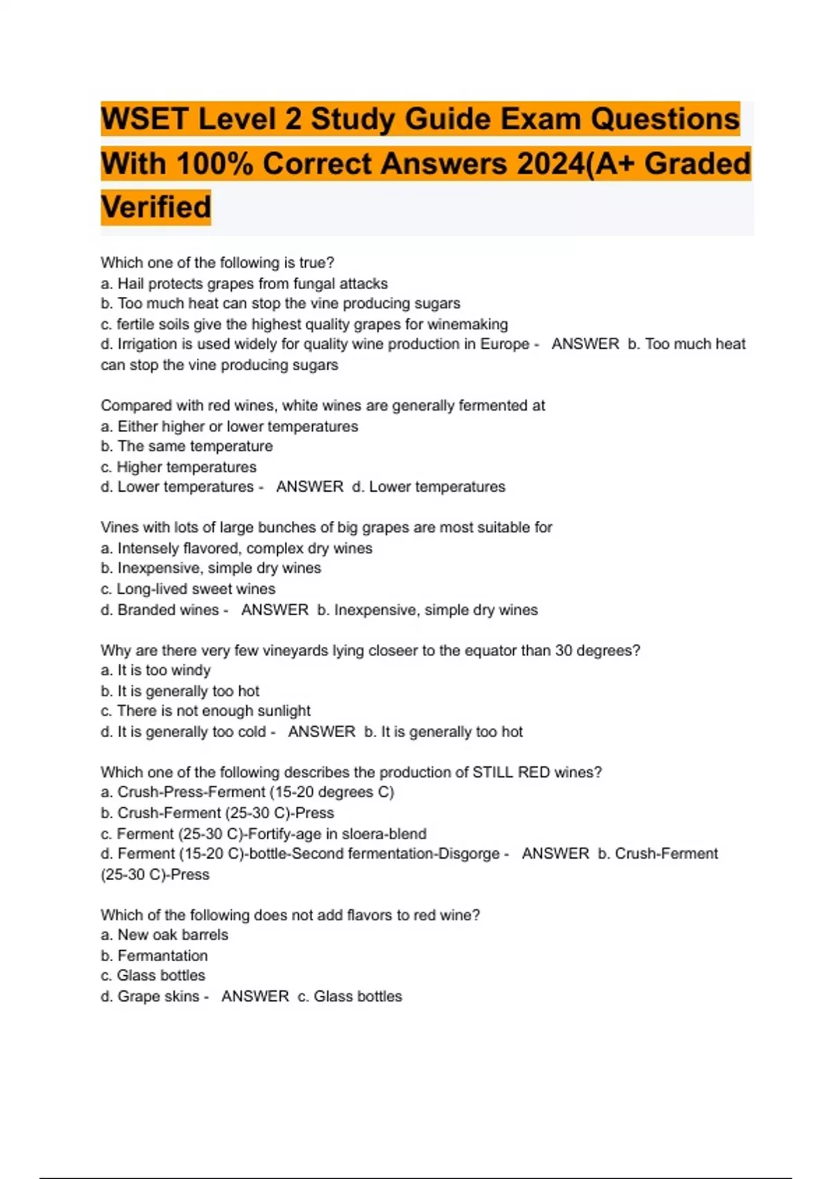 WSET Level 2 Study Guide Exam Questions With 100% Correct Answers 2024(A+ Graded Verified