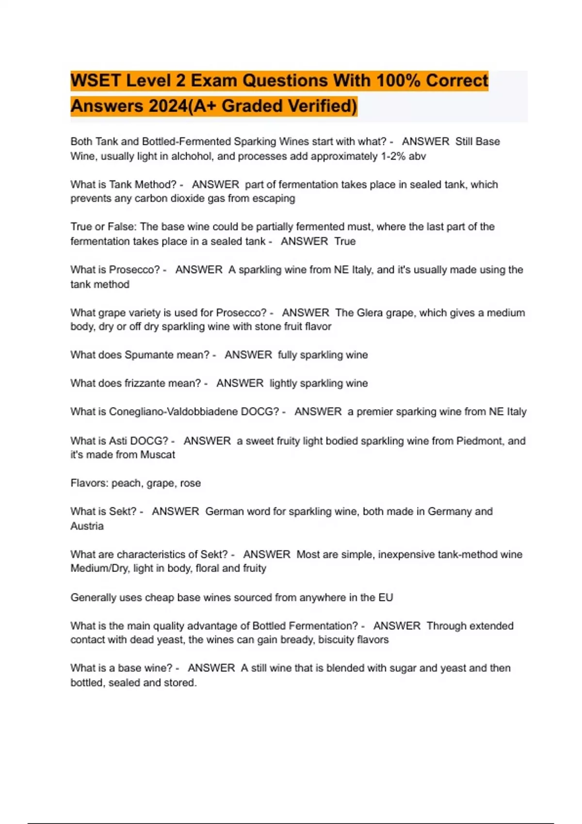 WSET Level 2 Exam Questions With 100% Correct Answers 2024(A+ Graded Verified)